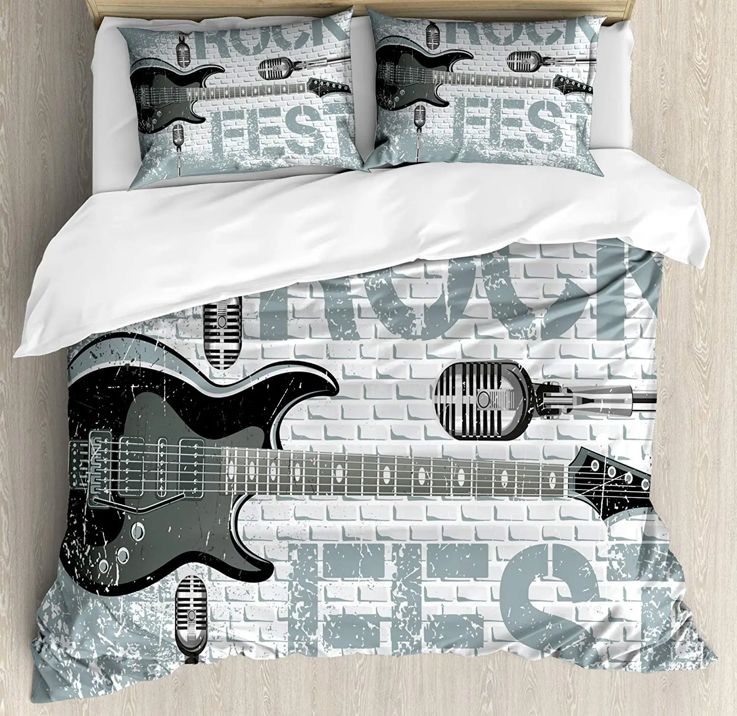 Набор пододеяльников Rock Music, гранж-цвет, брызги, кирпичная стена, фон, электронная гитара, микрофоны, дизайн, декоративное постельное белье из 3 предметов