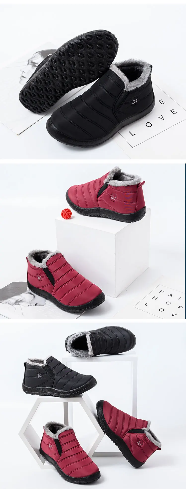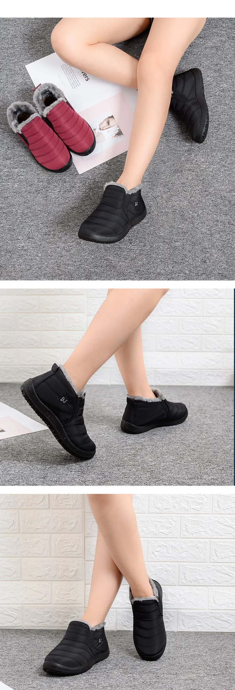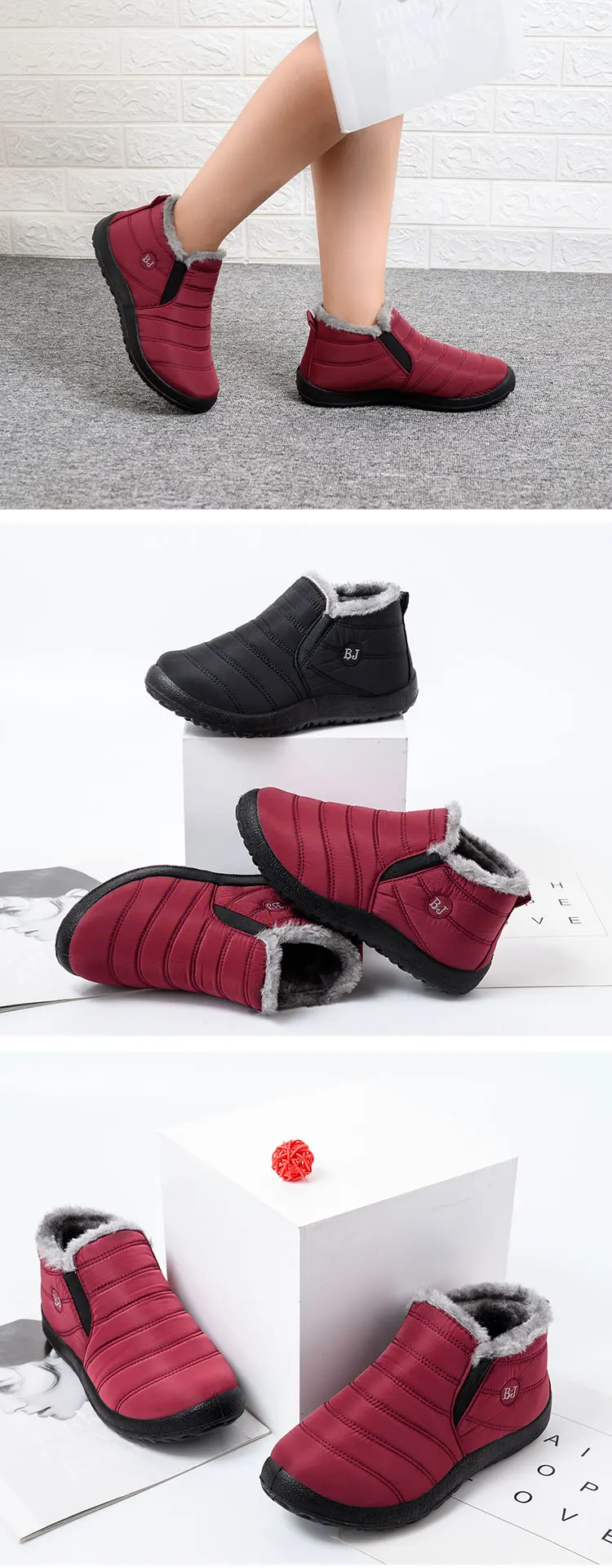 Женские ботильоны с плюшевой подкладкой BaiRuiLun, зимние водонепроницаемые ботинки, теплые ботинки размера плюс