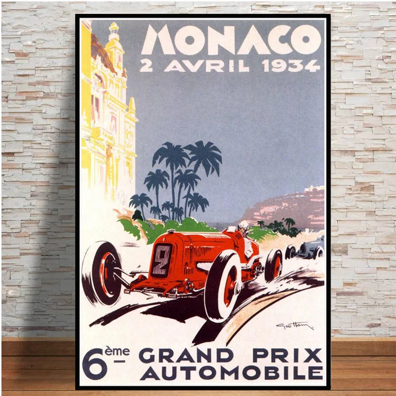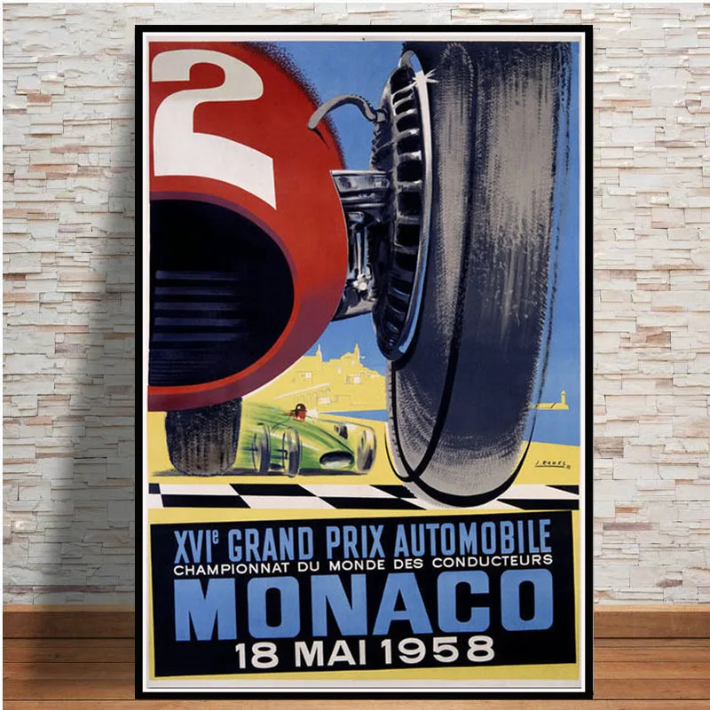 Популярный чемпион мира по мотивам Гран-при Ретро Монако 64й супер мотор автомобиль постер настенное Искусство Холст Картина для комнаты домашний декор