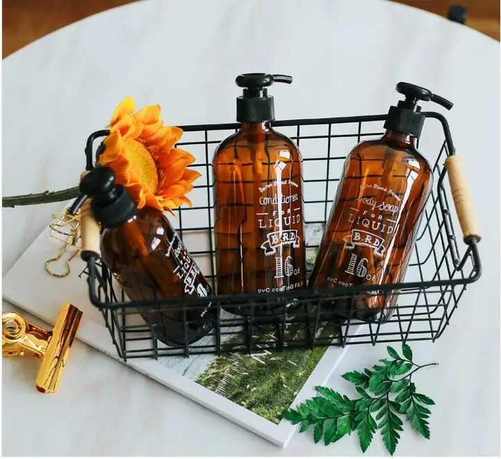 Дозатор для мыла в нордическом стиле, стеклянный диспенсер для шампуня и кондиционера, для ванны и душа, коричневый цвет