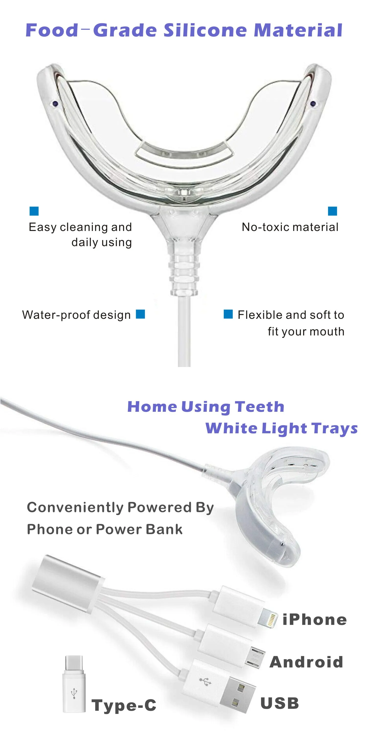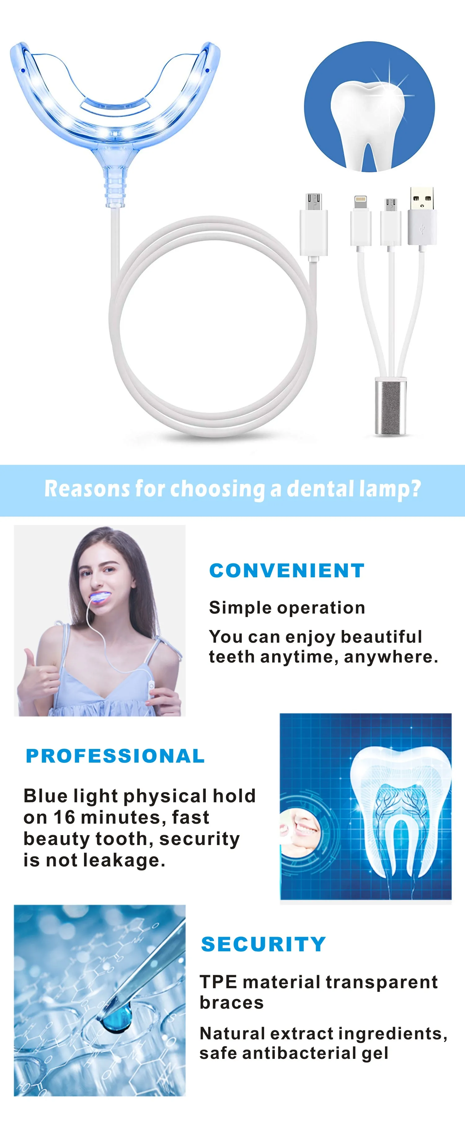 Портативная система для отбеливания зубов со светодиодсветодиодный индикатором и холодным синим светом, устройство для отбеливания зубов, в комплекте 2 геля для отбеливания зубов