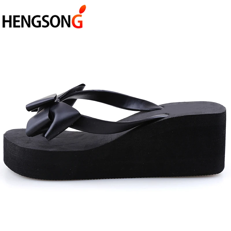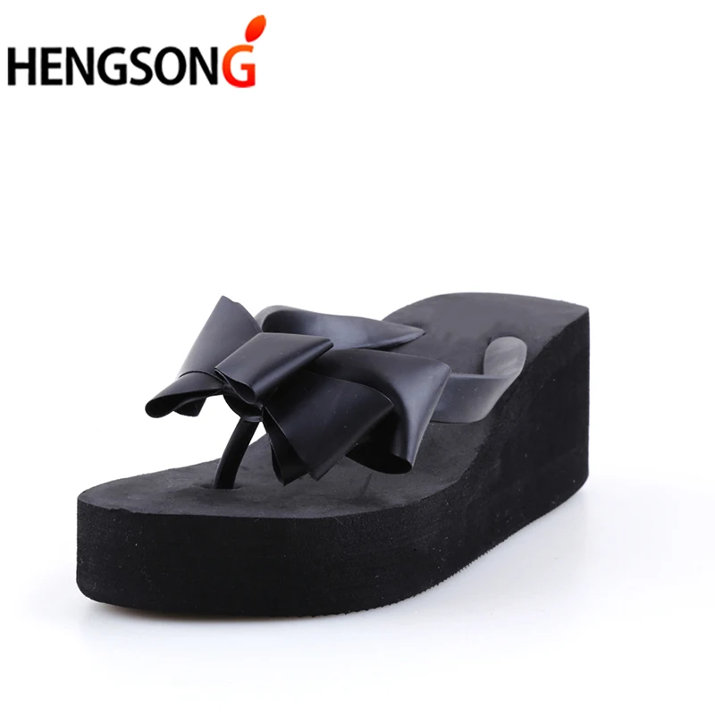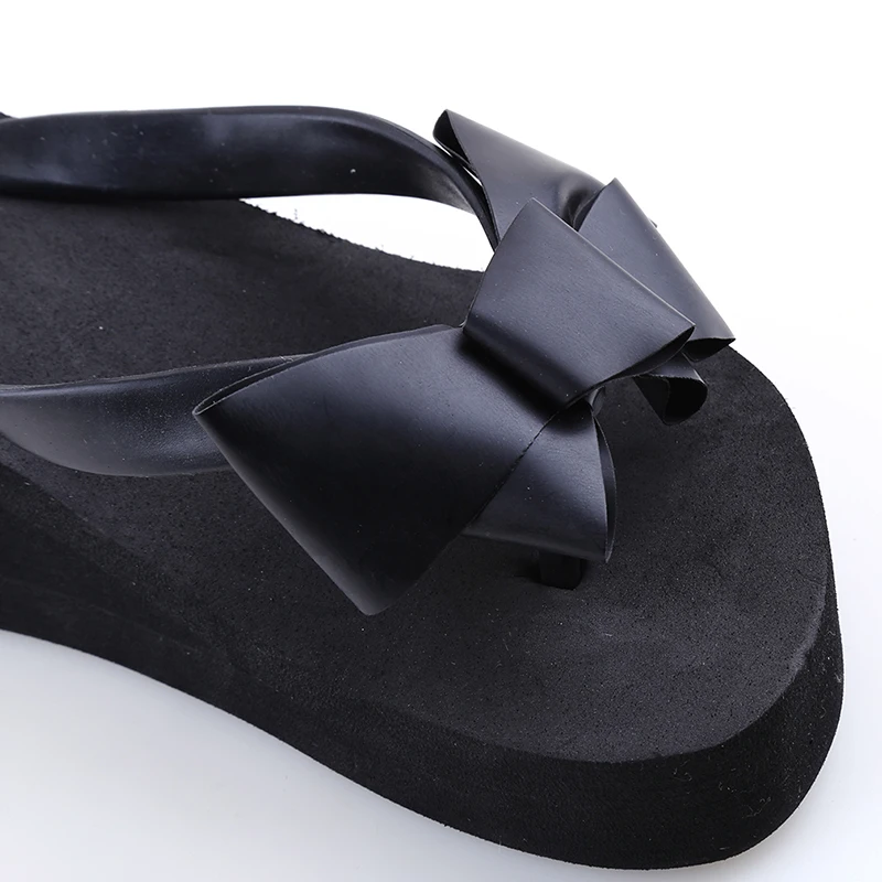 Шлепанцы женские на платформе, пляжные сланцы на средней танкетке, с бантом, летняя обувь