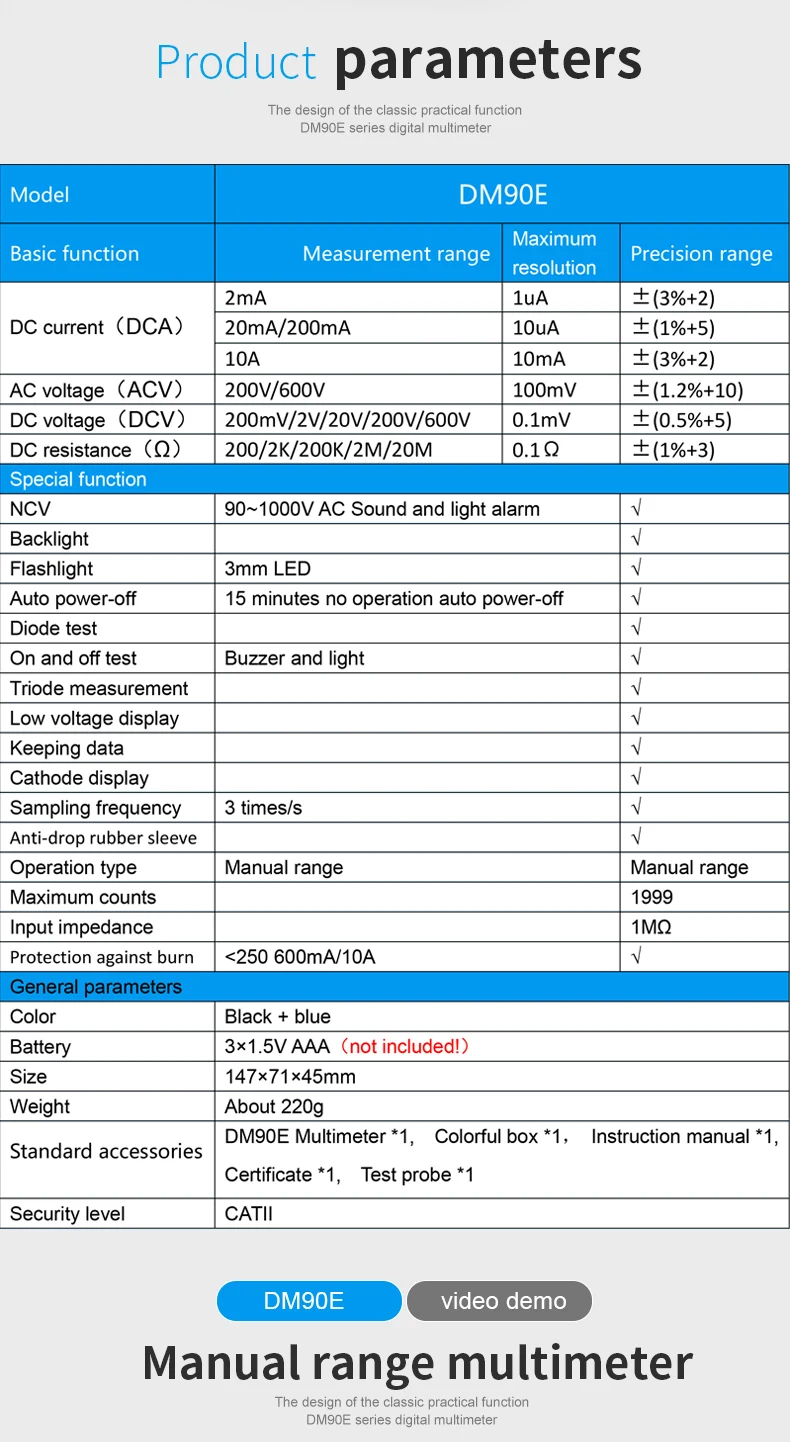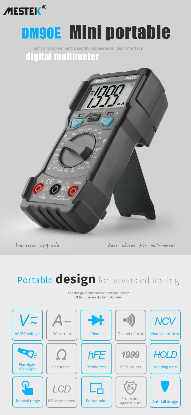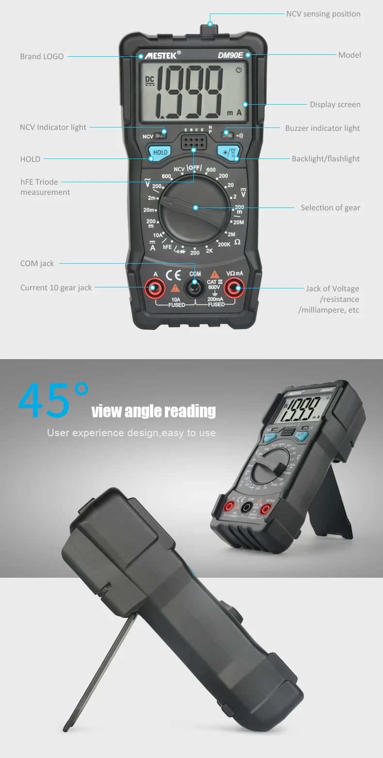 Интеллектуальный мультиметр DM90E, высокоскоростной автоматический интеллектуальный мультиметр с защитой от перегорания NCV True RMS, цифровой мультиметр