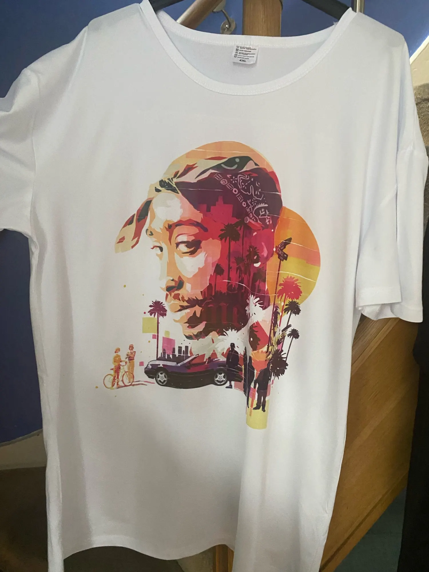 Красивая футболка! Достойное, хорошее качество. Это не хлопок, а толстый нейлон. Я не против быть честным, потому что я заказал максимальный размер и его хороший и свободный. Принт очень хороший, высокое качество не похоже на наклейку. Вы можете гладить без проблем. Приятно удивлен ценой! Рекомендуем!