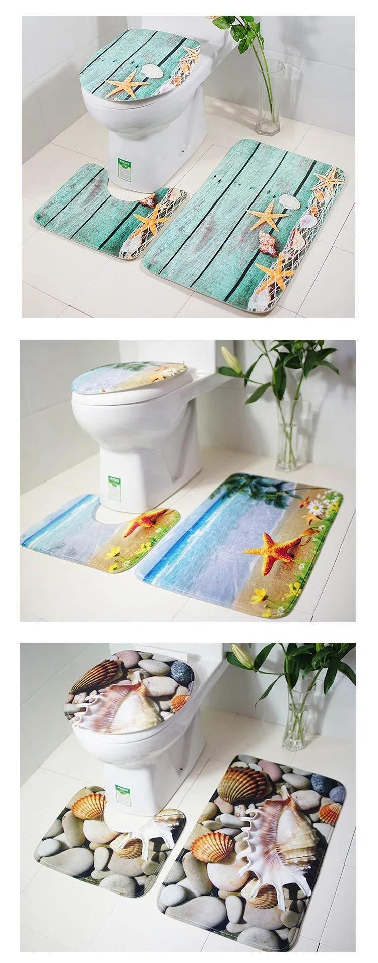 3 шт. =КвадратныйКоврик + u-образный коврик + чехол для унитаза