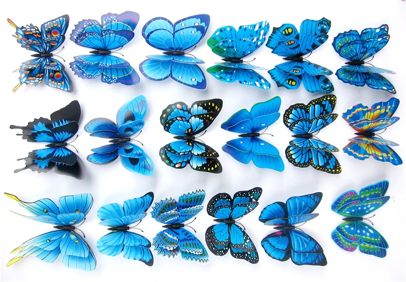 Креативный 3D синий цветной двойной крыло бабочка стиль стикер на стену для Украшения Дивана ТВ фон настенный домашний декор