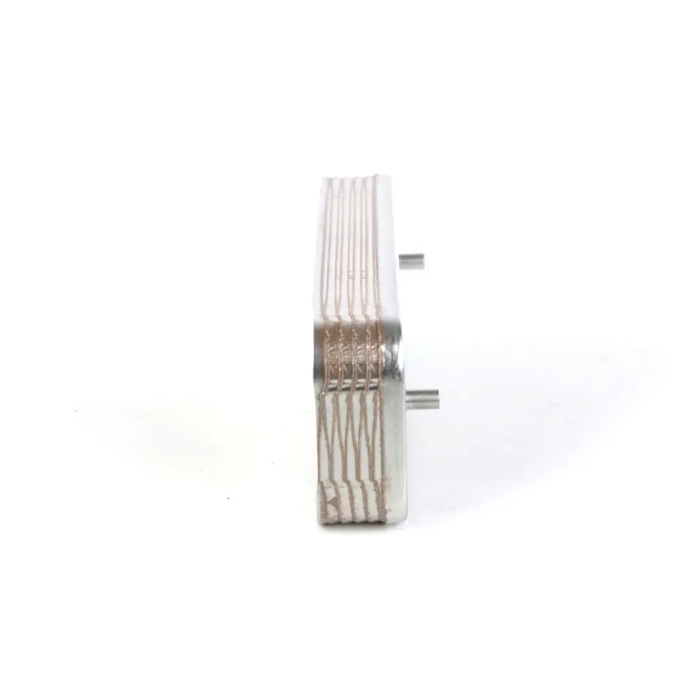 Вторичный пластинчатый теплообменник устанавливается в бытовых настенных газовых котлах и предназначен для нагрева горячей воды. Он состоит из 10 пластин из нержавеющей стали марки AISI 304, спаянных между собой 99,9% медью. Площадь теплообмена каждой пластины составляет 0,014кв.м., имеет рабочую температуру от -195С до +225С и выдерживает давление до 10 атм. в контурах отопления и ГВС.