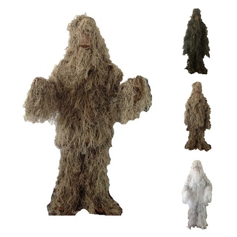 Технические характеристики-Уникальная прострочка и прочные трубопроводы-Различные камуфляжные цвета-Колпаки включены Особенности:1. Большое количество крашеных камуфляжных волокон упаковано в костюм, но гораздо легче и удобнее, чем мешковина, и все же волокна являются плесени и влагостойкими и безопасными для человеческого тела.2. Внутренняя подкладка из дышащей и мягкой сетчатой ткани, которая позволяет вам чувствовать себя гладкой и теплой зимой, но сохраняет прохладу летом.3. Куртка закрыта спереди с помощью кнопки pressbutton, очень легко открывается и закрывается.4. Капюшон обеспечивает полное покрытие головы/лица, обеспечивая при этом большое поле зрения, и его можно снять.5. 1,2 м свободная длина эластичная ружьё обертывание/пистолет-крышка поставляется с одной петлей на обоих концах для пряжки на нашем оборудовании.6. Другие требования могут быть выполнены для конечных пользователей.Этот лесной костюм Ghillie/охотничий Снайпер Suitis изготовлен из полиэфирного волокна, свободный размер,Весит около 1,4-1,6 кг, включает в себя жакет, Штаны, капюшон, ружье обертывание и коробка для хранения/сумка для переноски.Он обеспечивает вам полное сокрытие от ваших противников или добычи и имеет многоИспользование таких как охота, Рекон, пейнтбол, страйкбол, фотографирование, военные, правоприменительные,Хэллоуин и многое другое.Посылка включает в себя:1) Полная куртка 2) длинные штаны 3) Крышка на голову 4) винтовка 5) сумка для переноски