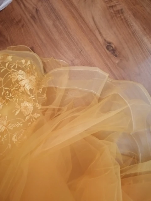 Платье красивое, очень похожее на фотографии. Вышивка на животе немного отличается, там есть лоскут, а не два маленьких на боку. Бусины пришиты сверху, поэтому их сложно снять. Ткань немного просвечивается и немного грубая. Для моей чувствительной кожи это было довольно зуд, я рекомендую носить что-то под платьем. Доставка занимает больше времени.