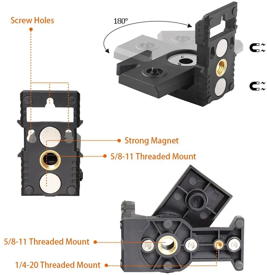 Strong сильное магнитное крепление L с резьбой triop может легко прикрепить лазер к любым сталям, поворачивая на 180 градусов, как вам нравится.➤ Он также принимает стандартный винт штатива для регулировки высоты.