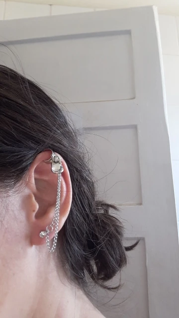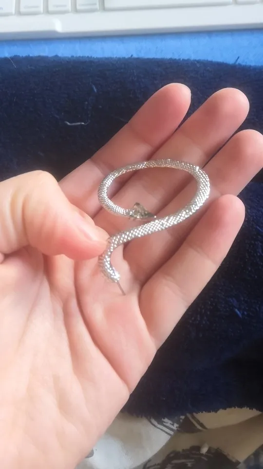 Сережка красивая, но застежка держится плохо, нижняя и верхняя часть перекручиваются, а на ухе нижняя часть переворачивается не лицевой стороной, поэтому приходится быть осторожной и следить за этим.