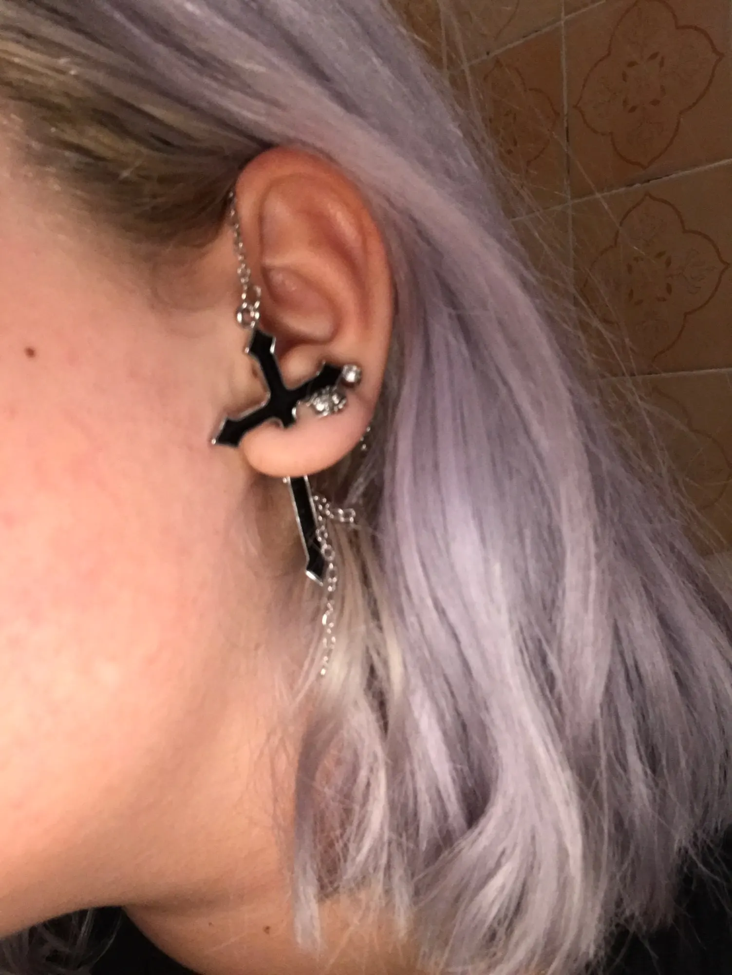 Серьги-подвески женские, в готическом стиле, черные, с металлическими кисточками и крестом