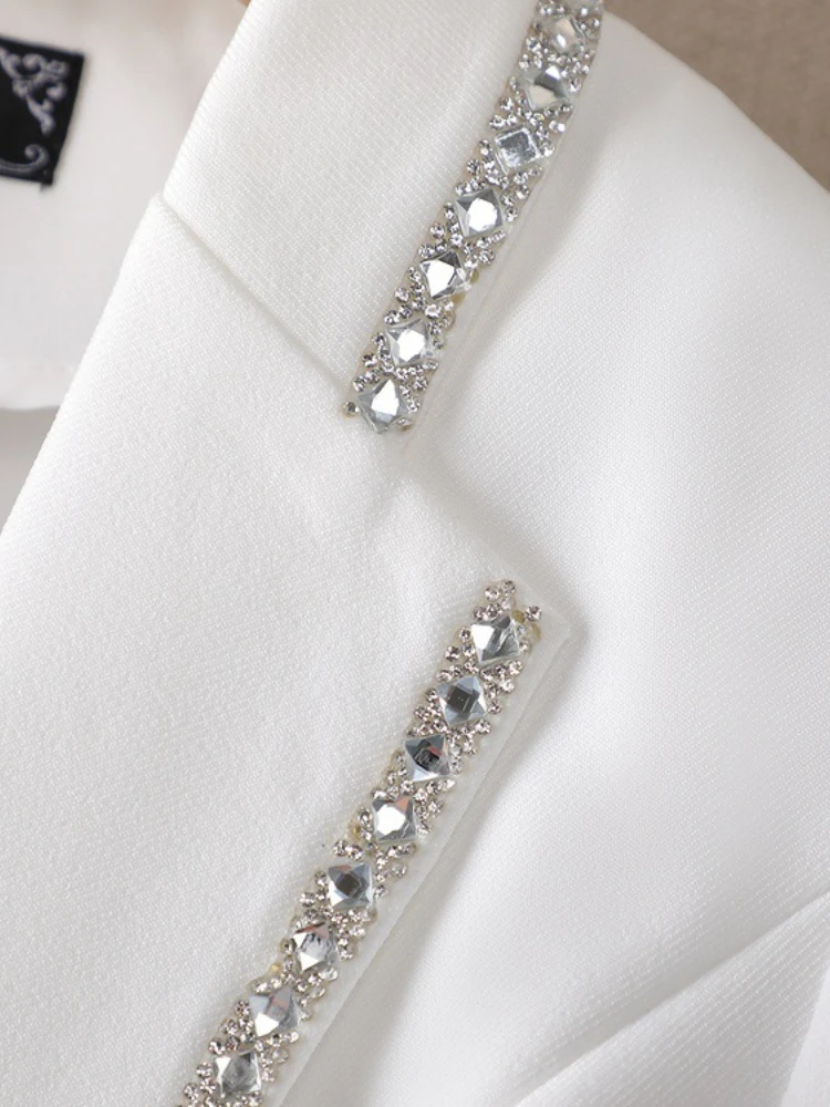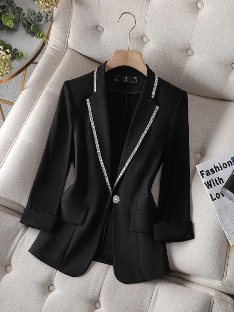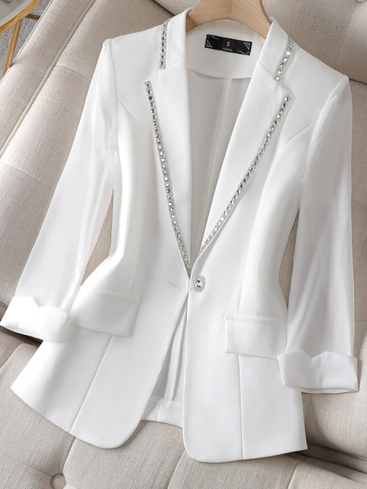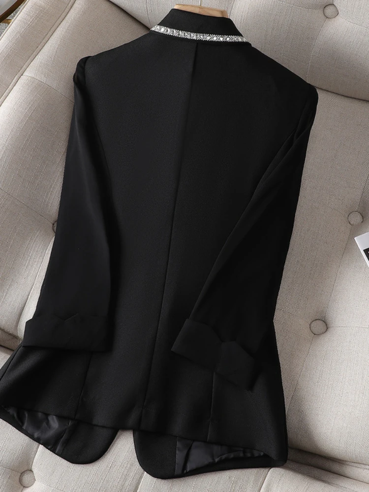 Пиджак женский однотонный с английским воротником, повседневный офисный элегантный костюм со стразами, пальто, топ, весна-лето