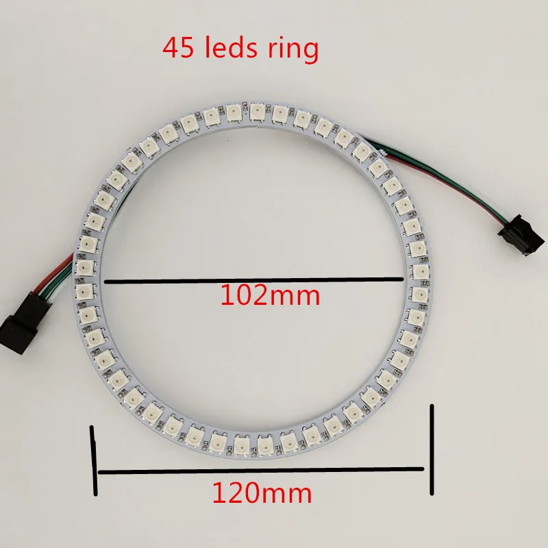 Посылка включает в себя: 1 * Светодиодный кольцо Описание 1. Встроенная схема для напряжения постоянного тока 5 В; 2. Более низкая мощность, 180 градусов блеск; 3. По производству супер яркий, длительный огни со средним значением 50000 + дом Срок службы, при этом потребляя меньше энергии; 4. Маленький размер, легко брать с собой. 5. Эффект RGB делает его отличным. 6. Не требуется никаких внешних резисторов, которые делают дизайн тонким. 7. Каждый светодиодный адресуемый, так как чип драйвера находится внутри светодиодный. Характеристики: 1. Название продукта: светодиодный кольцевой светильник RGB 5 В; 3. Светодиодный Количество: 16/24/35/45 светодиодов; 4. Напряжение: 5 В постоянного тока 5. Светодиодный чип: 5050 чип; 6. Цвет: полноцветный RGB; 7. Срок службы: 50000 часов.
