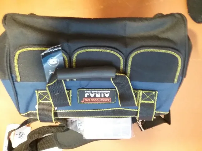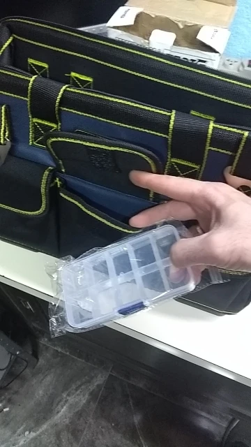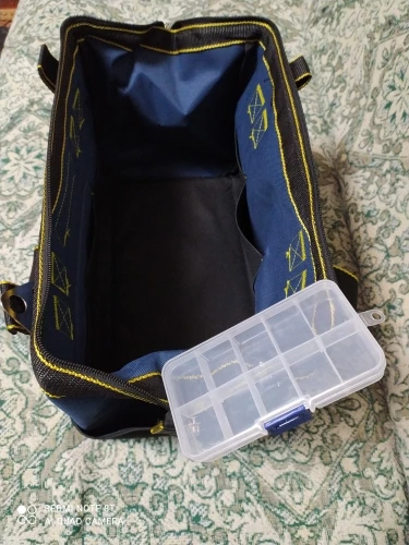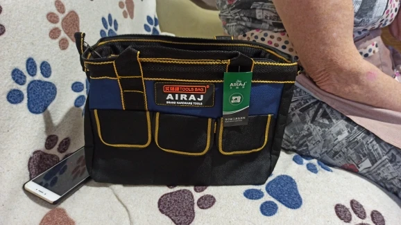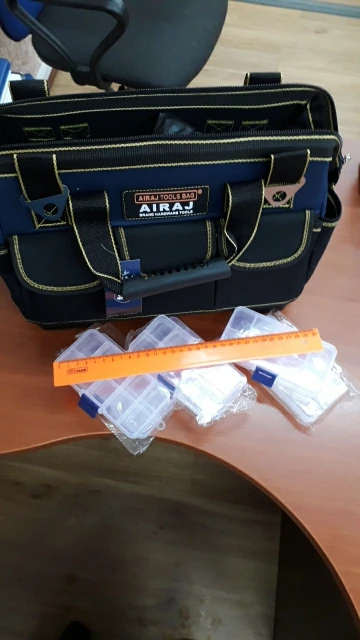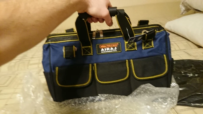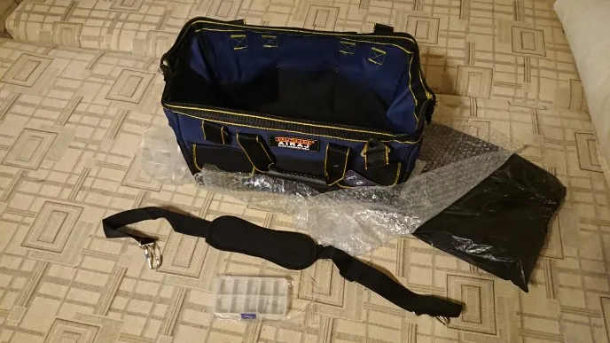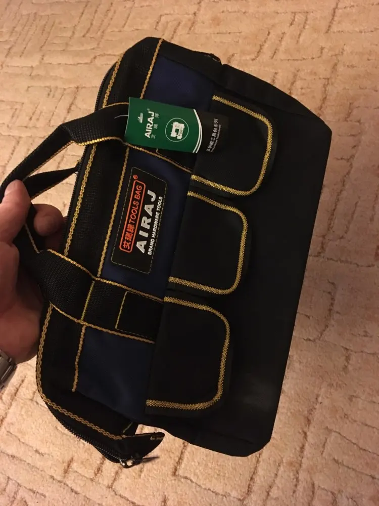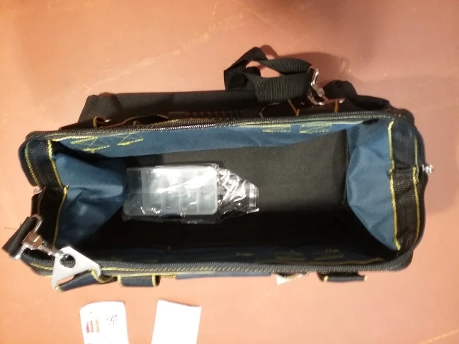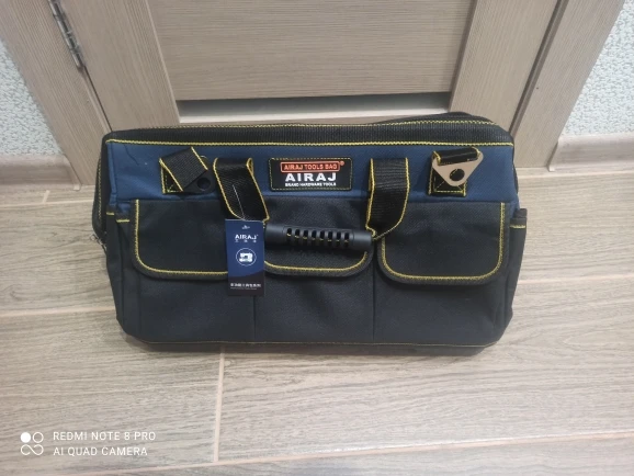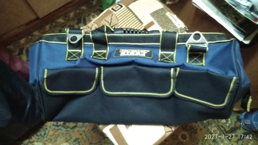 Апісанне тавара было дакладным. Браў спецыяльна для шуруповёрта і спадарожных шуруповёрту інструментаў. Усё, што трэба, як відаць на здымках, змясцілася і ёсць яшчэ трохі месцы. Наборы біт разьмясьціў па кішэнях, якіх па баках досыць: тры з клапанамі на ліпучцы, два простых, без клапанаў і липучек. Да атрымання на рукі ў Беларусь заказ ішоў крыху больш за месяц. Сумка выраблена якасна. З прадаўцом не меў зносіны, але ён усё зрабіў аператыўна, трэк адсочваўся ад пачатку да атрымання.
