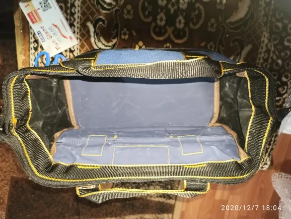 Доставка заказа пришла быстро, только маленький срок дали на получение (меньше недели). Изготовлено не плохо (хорошо прошита ткань, плотная прочная. Я очень разочарован, что дно пластиковое. Это не надёжно. Предполагал что оно из резинового жесткого материала будет. Мои планы когда делал заказ на другие цели были. Такая сумка не подходит. Не буду возвращать товар и открывать спор. Я её уплотню мягким материалом и пластины вставлю в боковые карманы, чтоб не сжимались стенки при закрытии. Я планировал и намерен носить в/камеру. Под инструменты использовать такую сумку, точно не стану. Товар плохой.