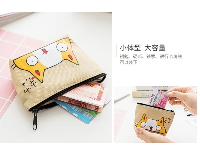Холщовый мультяшный женский кошелек для мелочи, милый кошелек для м...