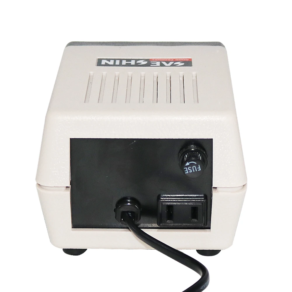 Тип изделия: электрическая дрель для маникюра и аксессуарыМатериал: ABS МаникюрСкорость вращения: 0-35000 об/минНапряжение: 220 В 50 ~ 60 Гц (не подходит для 110 В)Вилка: ЕСМощность: 65 ВтВыход: DC 0-32V 0.5AПредохранитель: 1A(220V)Цвет: как показано на картинкеВес наконечника: 250 гВес основного станка: 1275 гГлавная машина Размеры: 12,5*9,5*8,5 см/4,9*3,7 * 3.3in