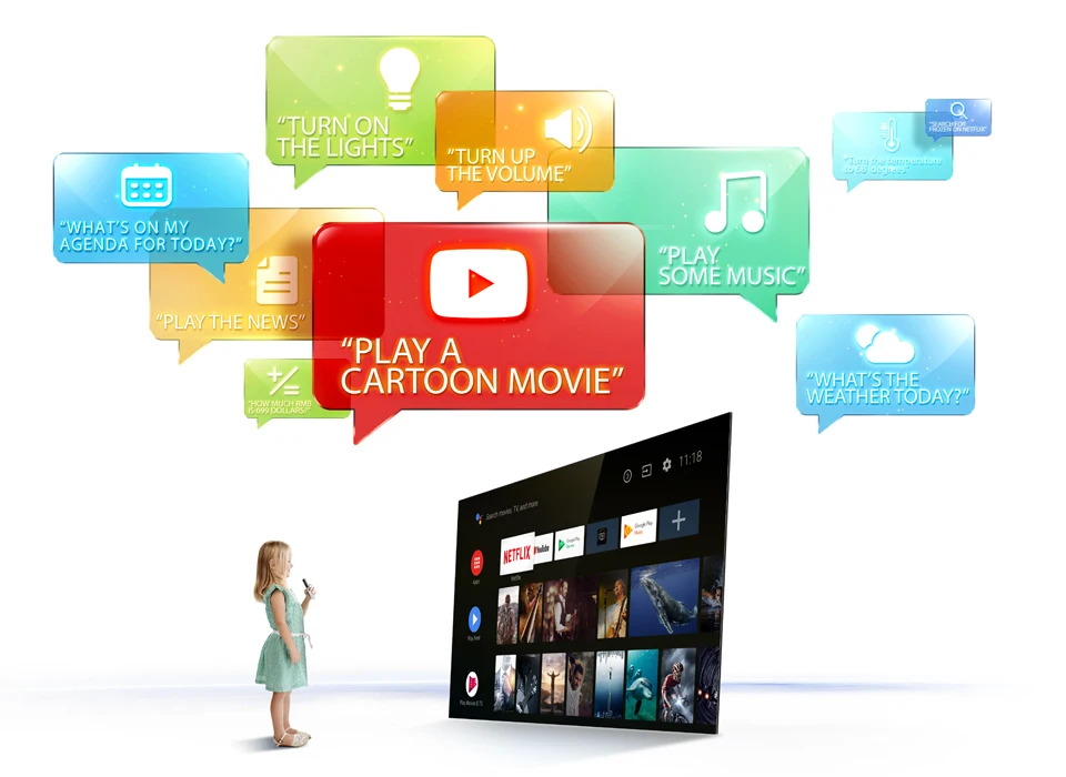 в рамках которой все продукты на базе AI будут группироваться вместе и успешно взаимодействовать с Android TV и Amazon Alexa. С помощью интеллектуальной платформы телевизоры TCL могут стать частью системы «умный дом». Voice Search «Какая погода в Сочи? Какие фильмы были номинированы на Оскар в 2018 году? Я хочу посмотреть боевик». Вместо того, чтобы пытаться разобраться в системе навигации или набирать утомительный текст, воспользуйтесь функциями голосового поиска. Просто скажите, что вам хочется посмотреть.