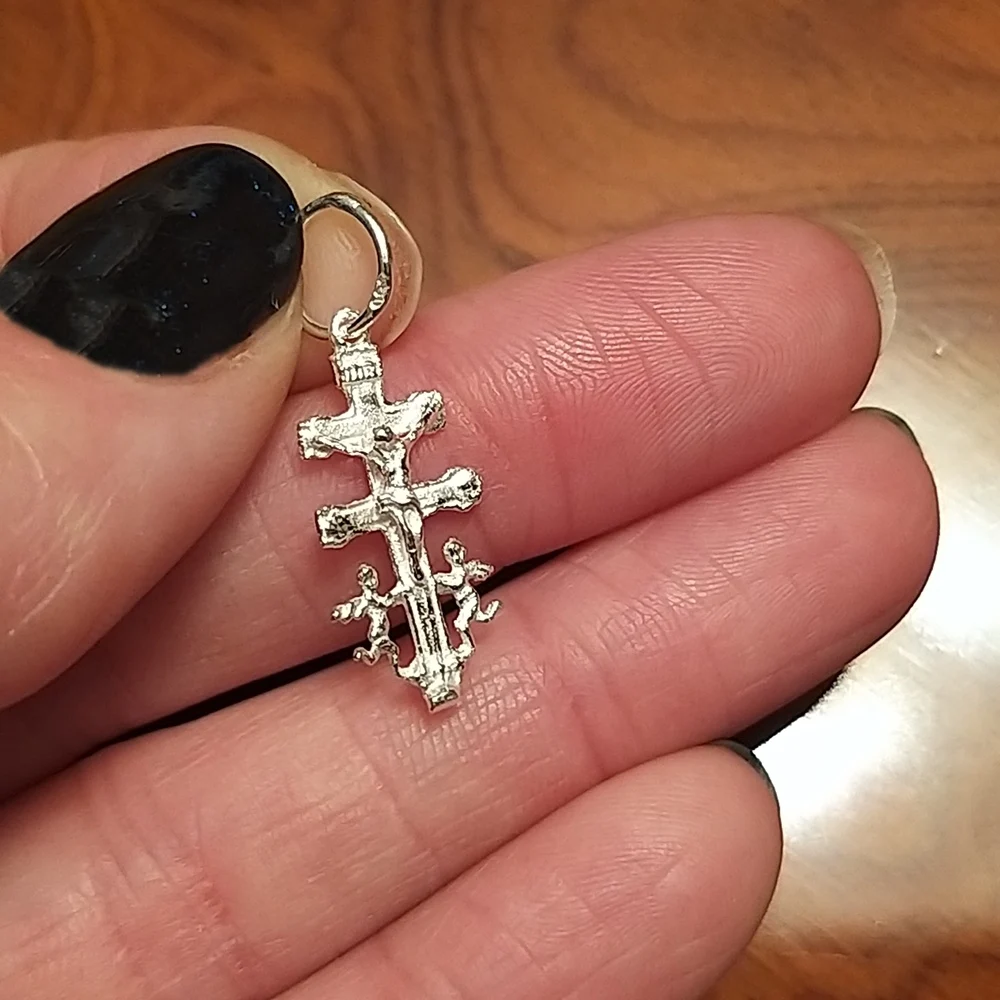 Home cross-Caravaca из стерлингового серебра 925 пробы. Размеры: 2 см. Длина и 1 см. Широкая.