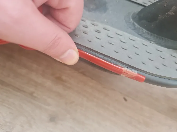 Ленты едва хватает для того чтоб обернуть часть самоката с батареей.