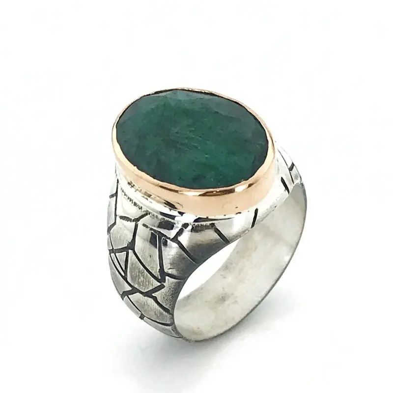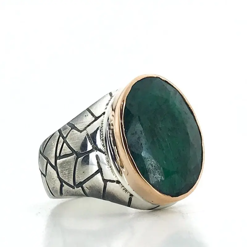 Мужское кольцо из серебра 925 пробы с натуральным изумрудом