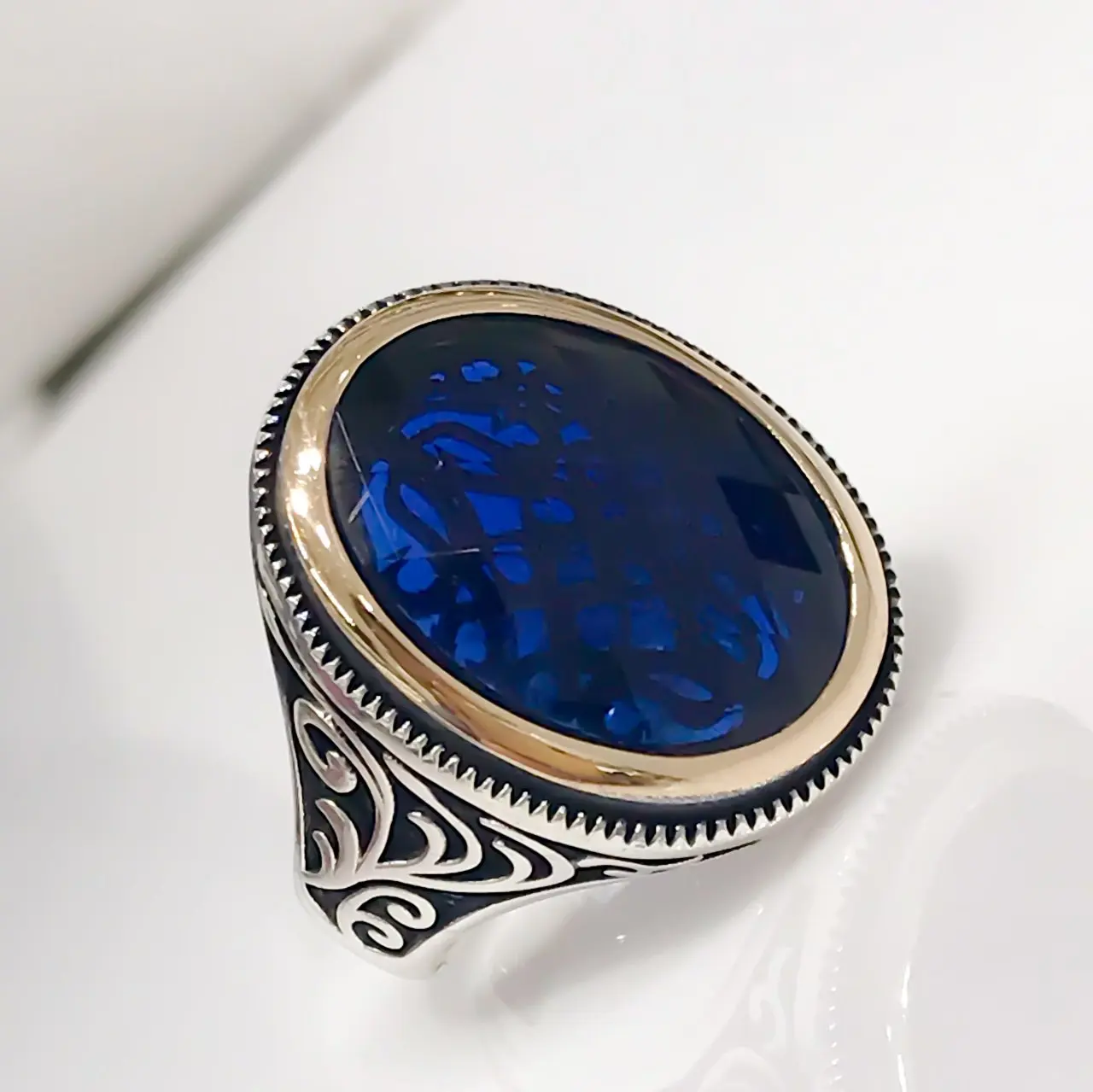 Специальное кольцо для мужчин из натурального сапфирового камня и с...