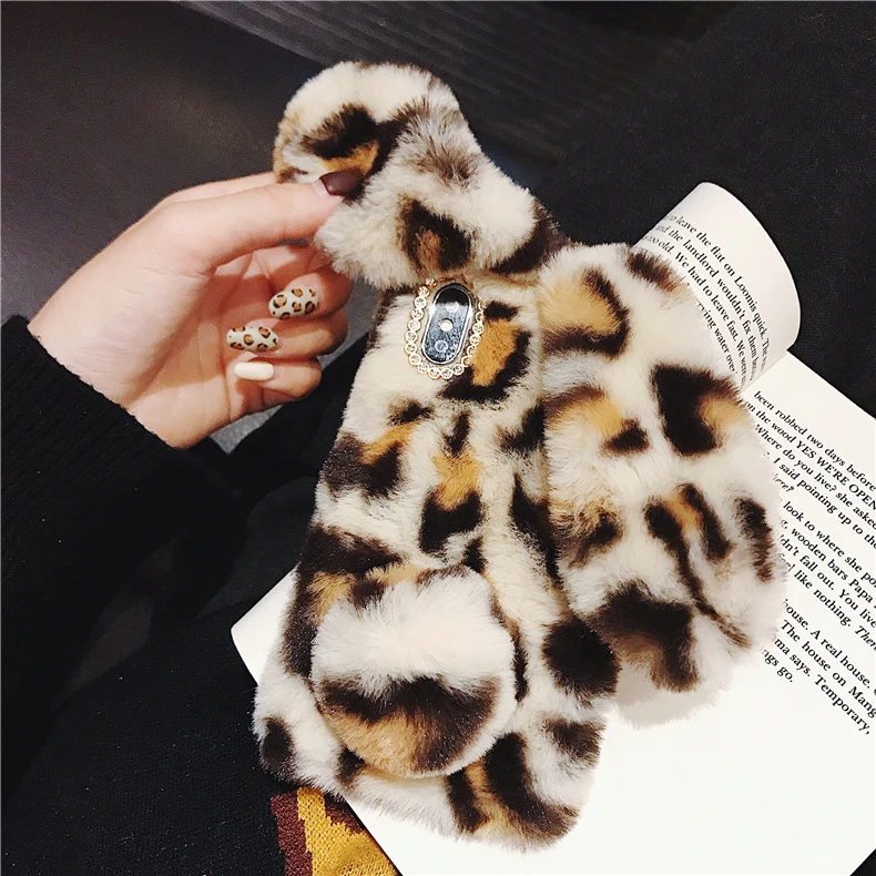 Модный теплый чехол с милым кроликом и пушистым леопардовым принтом...