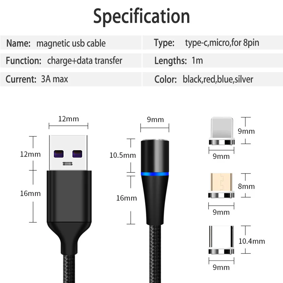 Микро-кабель USB Type-C QC 3,0 для быстрой зарядки, 3 А, магнитный ...