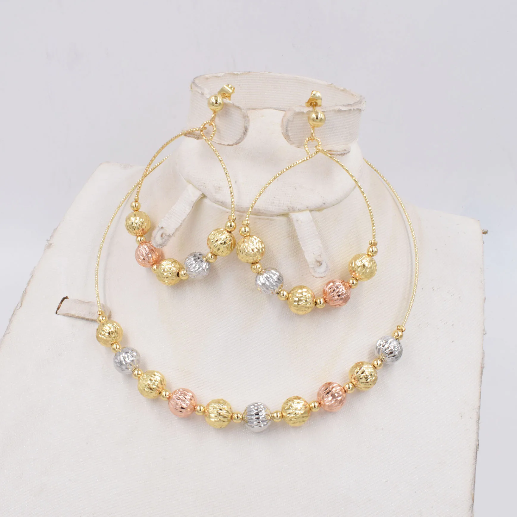 Высокое Качество Италия 750 золотой цвет набор украшений для женщин африканские бусы ювелирные изделия модное ожерелье набор серьги ювелирные изделия
