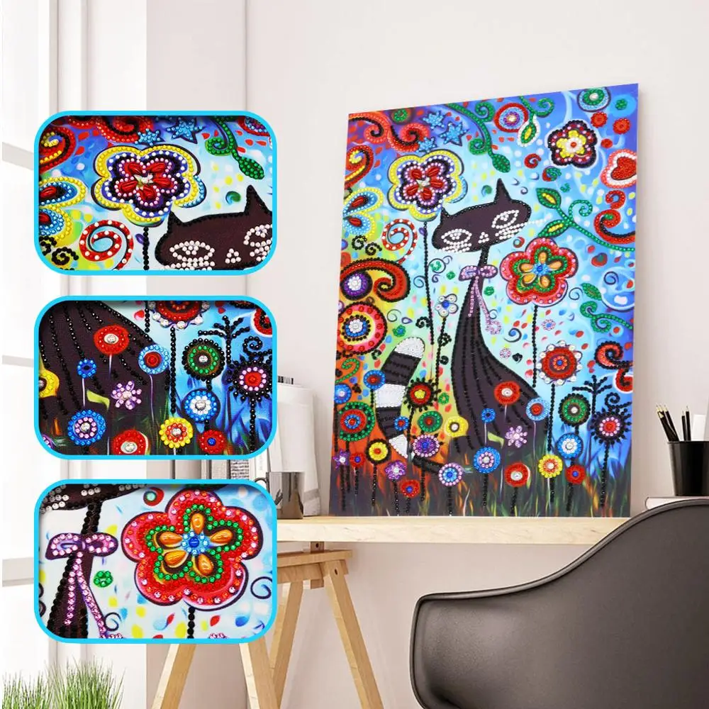 DIY 5D алмазная живопись в форме наклейки Черный кот Ручная работа Кристалл алмазная живопись цветок вышивка крестиком мозаичный узор