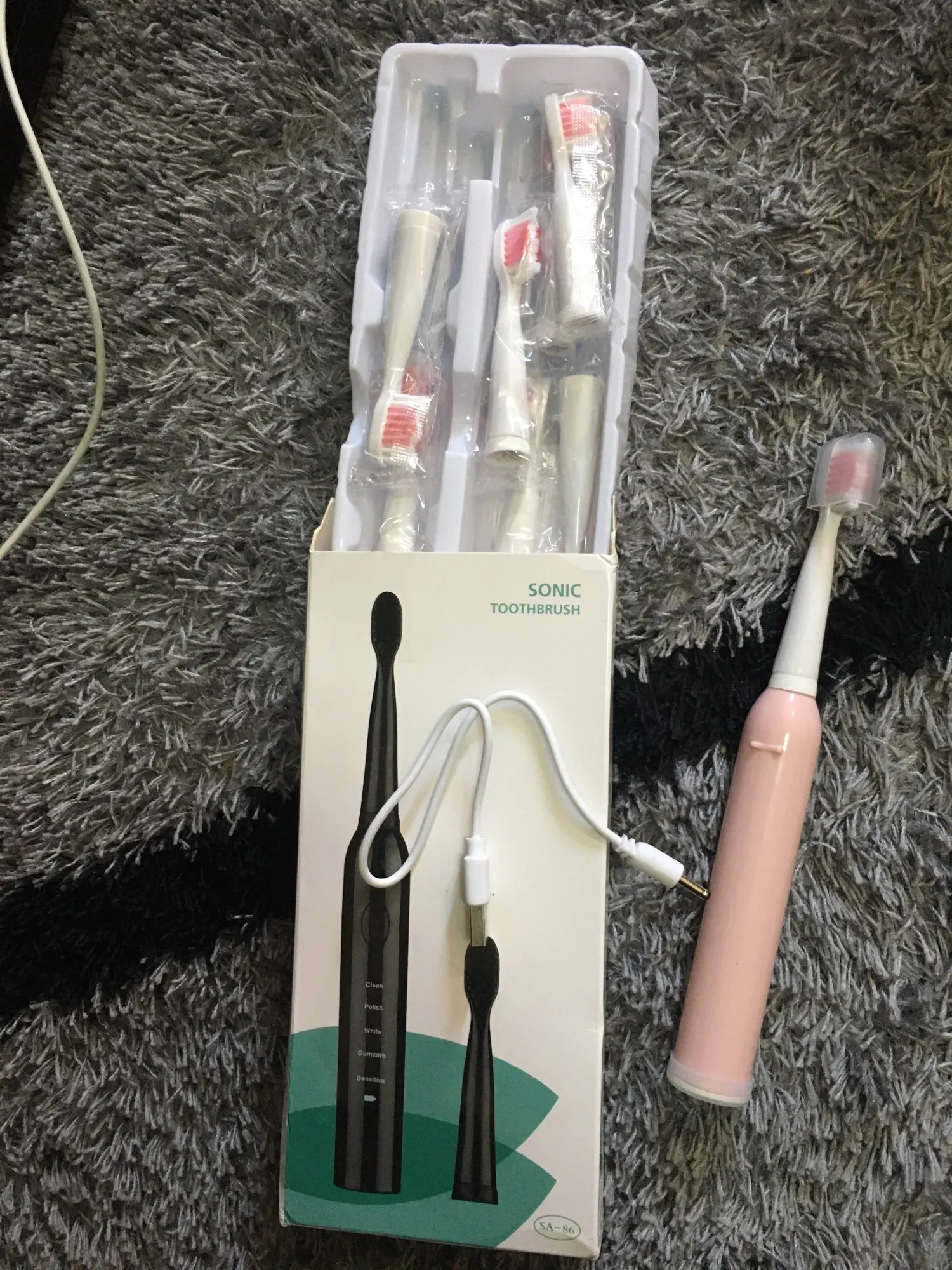 【 1 】 мощная очистка до 41000 ударов в минуту 【 2 】 3 часа зарядки для минимиума 15 дней использования 【 3 】 мягко и эффективно достигает глубоких между зубами и вдоль линии резинки 【 4 】 автоматический таймер на 2 минуты, интервалы на 30 секунд для обеспечения чистки в четырех квадрантах 【 5 】 IPX-7 водонепроницаемость для использования в ванне и душе 【 Аккумулятор емкостью 6 】, поддерживаемый зарядкой через USB, безопасное и простое автоматическое отключение после полной зарядки, Совместим с любым источником питания 【 7 】 щетина с зубьями сделана из нейлона Dupont, подходит для топографии зубов за счет очистки десен и труднодоступных участков Материал: ABS / TPE / DuPont нейлоновая щетинаРежим зарядки: Зарядка 5 в-USBНапряжение: 3,7 в Мощность: 0,5 ВтПосылка:1 электрическая зубная щетка4 | 8 оригинальных насадок1 х Руководство пользователя (на английском языке)1 x USB-кабель для зарядки1 х пылезащитный чехол1 х Красивая коробка