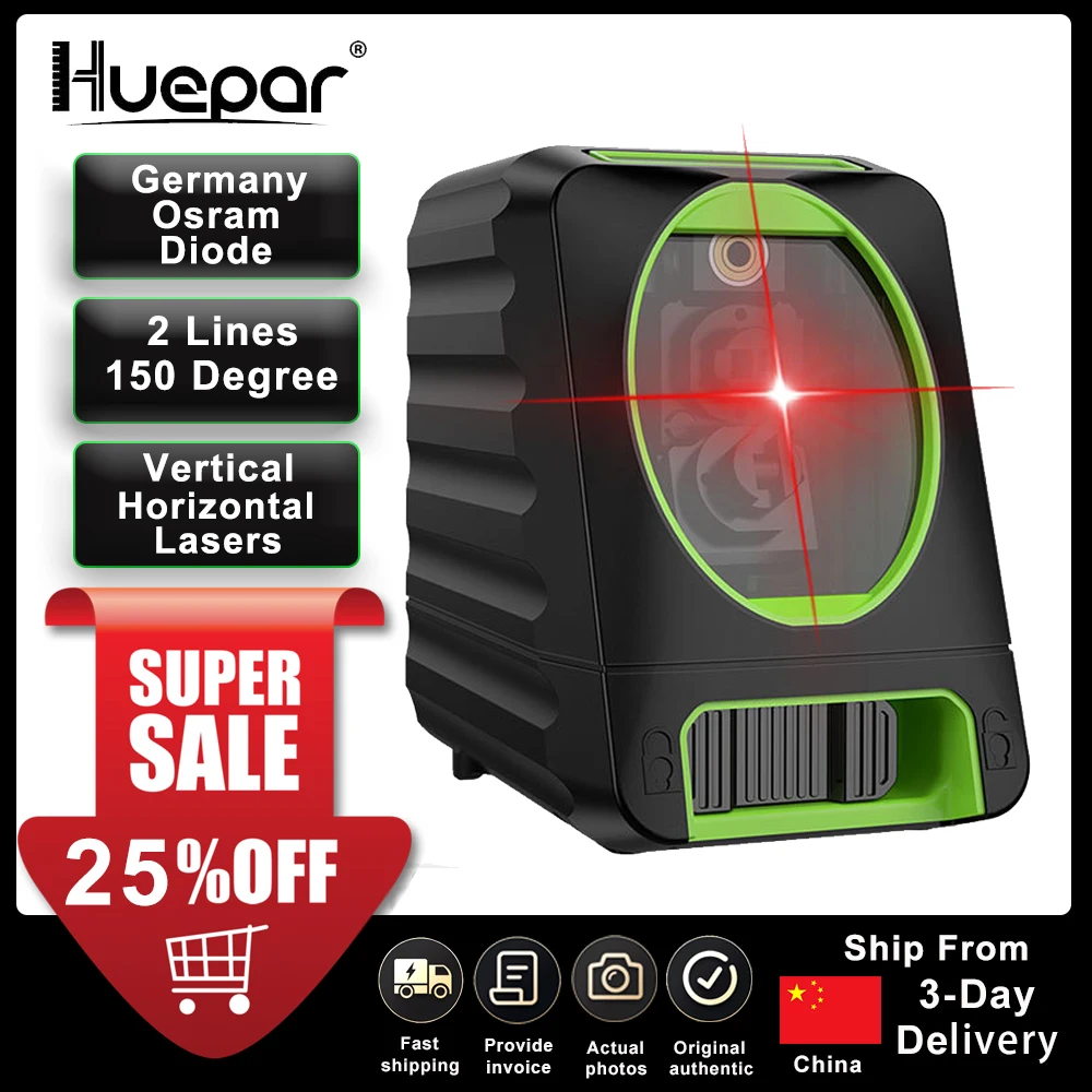 Лазерный уровень Huepar, красный луч, пересечение линий, 150130 градусов, вертикальныегоризонтальные лазеры, 635 нм, самонивелирующийся Нивелир, лазерный инструмент для диагностики