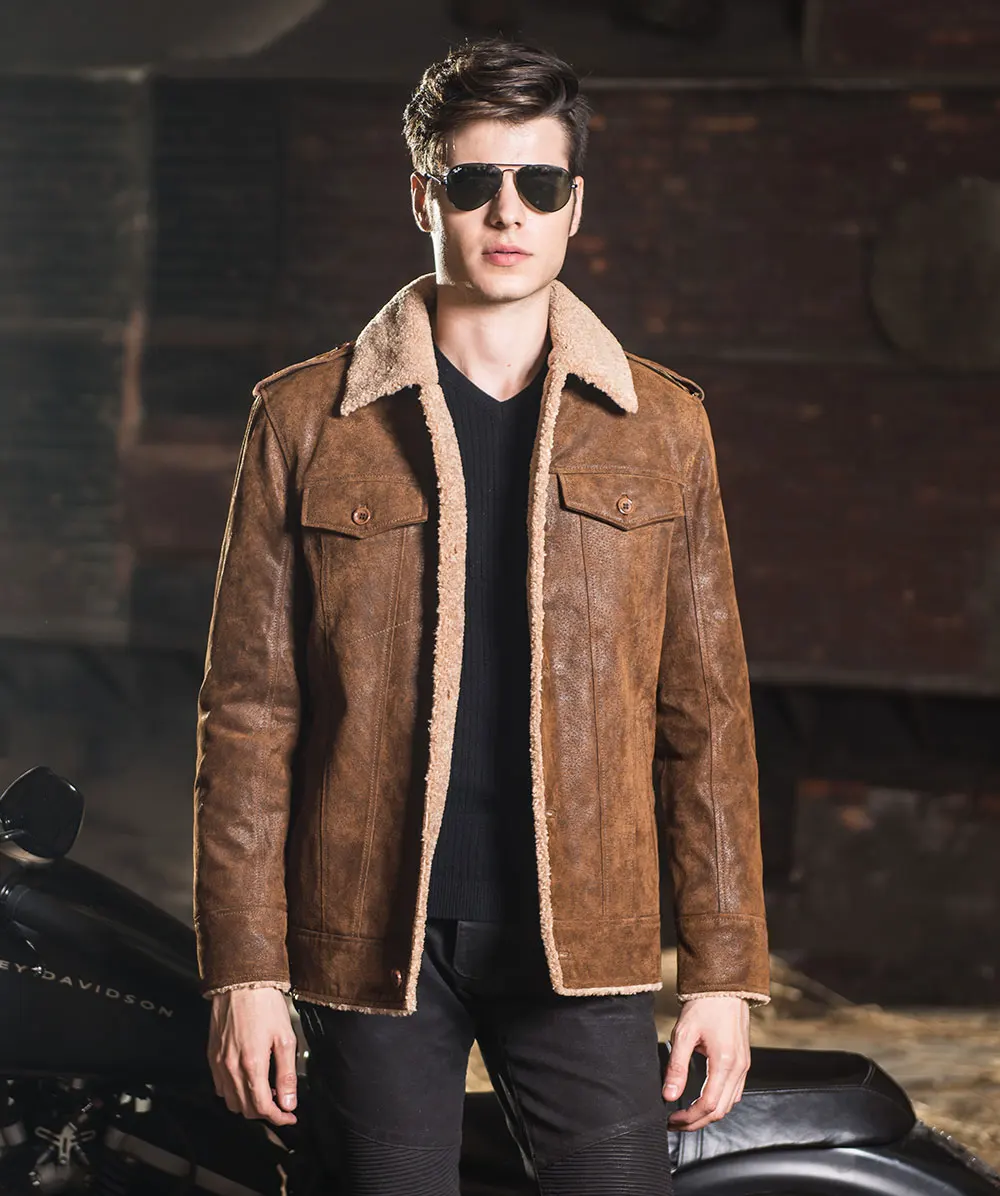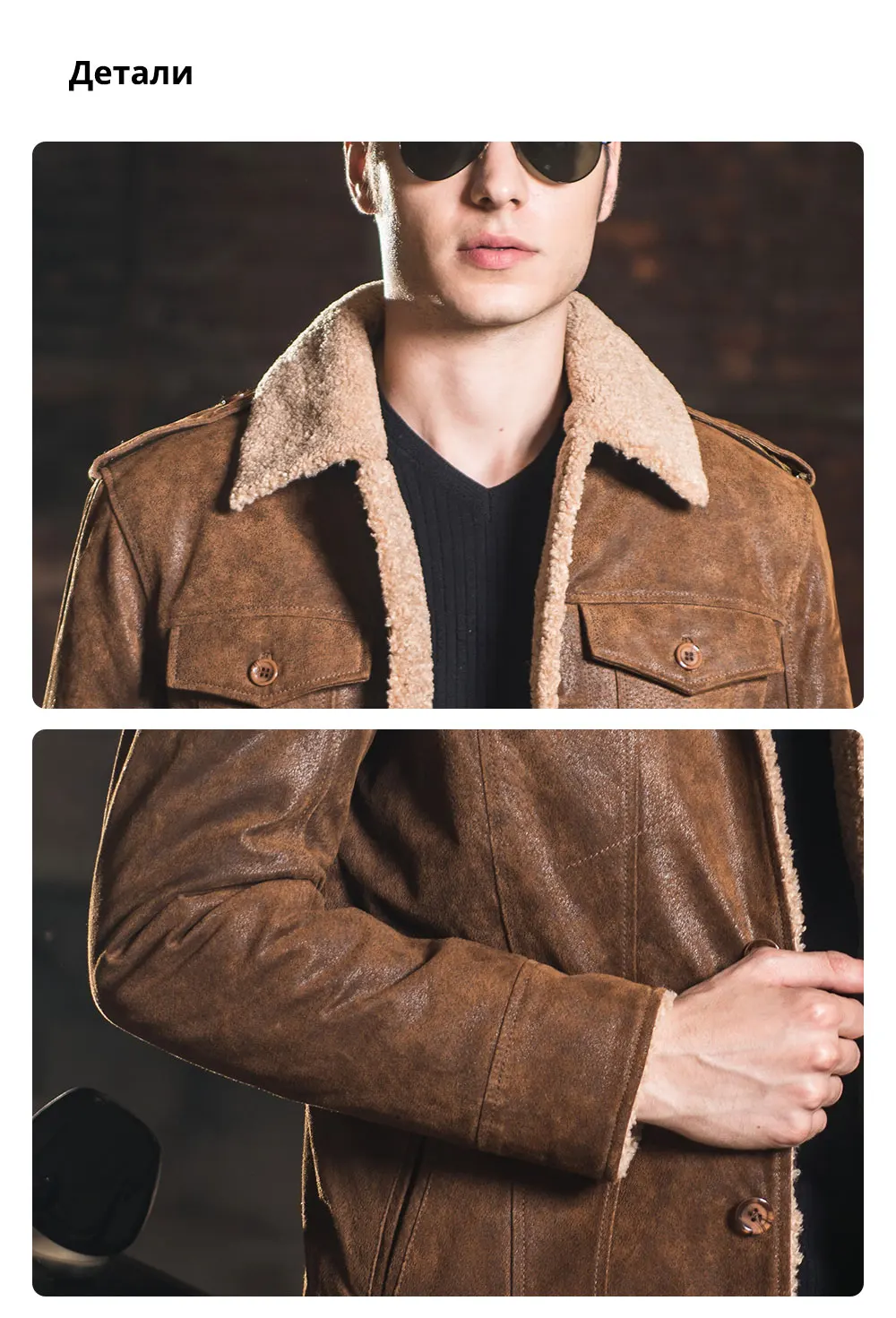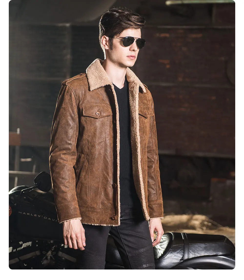 Kожаная куртка мужская джинсовая из свиной шкуры, куртки из натуральной кожи, жакет с подкладкой из искусственного меха, кожаное пальто, 2016