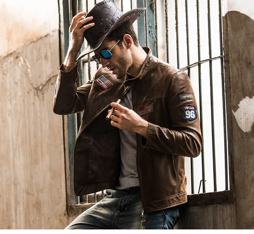 Мужская мотоциклетная куртка из свиной шкуры, жакет из натуральной кожи, куртка в стиле ВВС, 2016