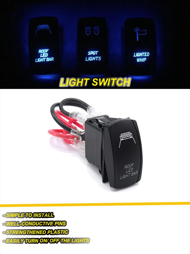 Подходит для большинства автомобилей, внедорожников, квадроциклов, UTV, 4X4, мотоциклов, грузовиков, джипов, вранглеров, лодок, яхт и других внедорожников.В основном используется для управления Светодиодный светильник, светодиодный светильник s, противотуманные фары, светильник s, головной светильник s, задний светильник s, внедорожный светильник s, лодочный светильник и т. д.
