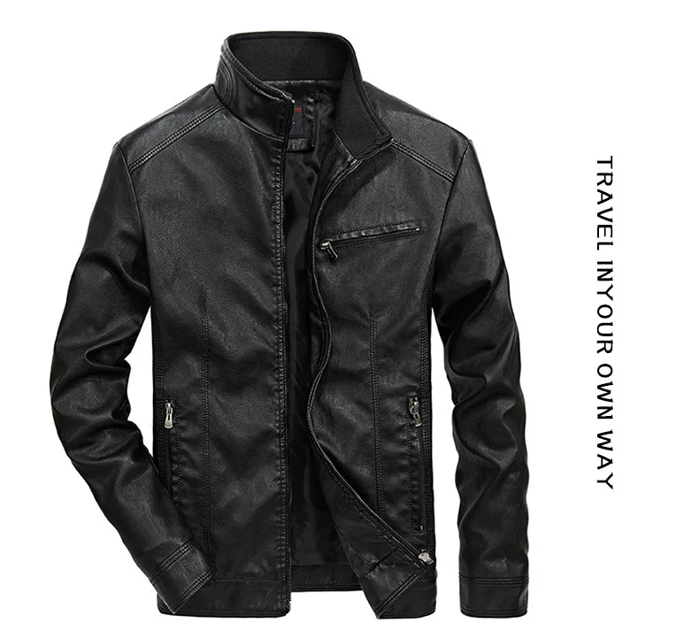 Куртка мужская из ПУ кожи, с воротником-стойкой, размеры до 5XL