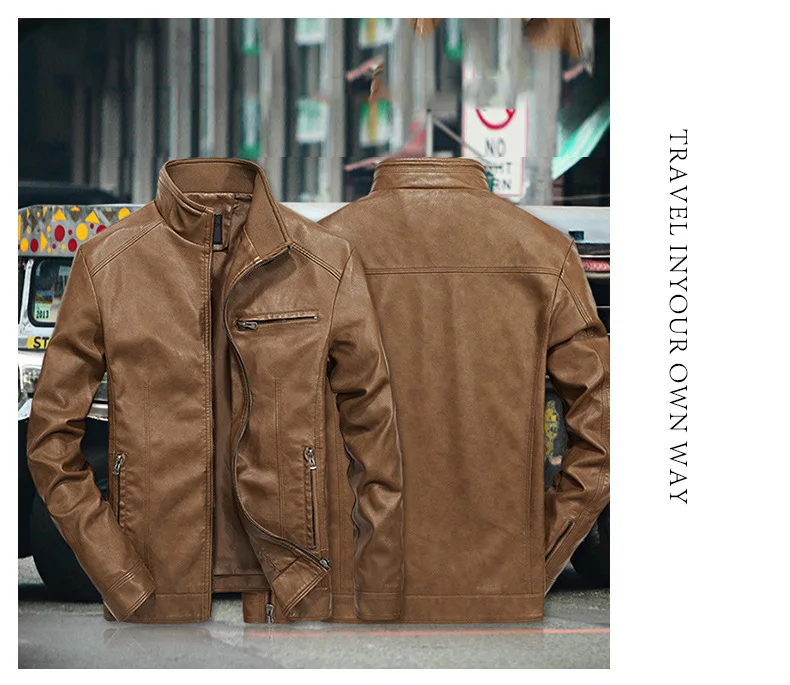 2019 мужские однотонные повседневные байкерские кожаные куртки, муж...