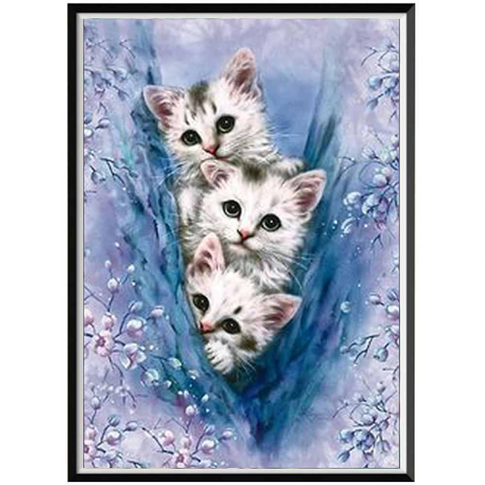 5D алмазная живопись, милая кошка, круглая Алмазная вышивка, вышивк...