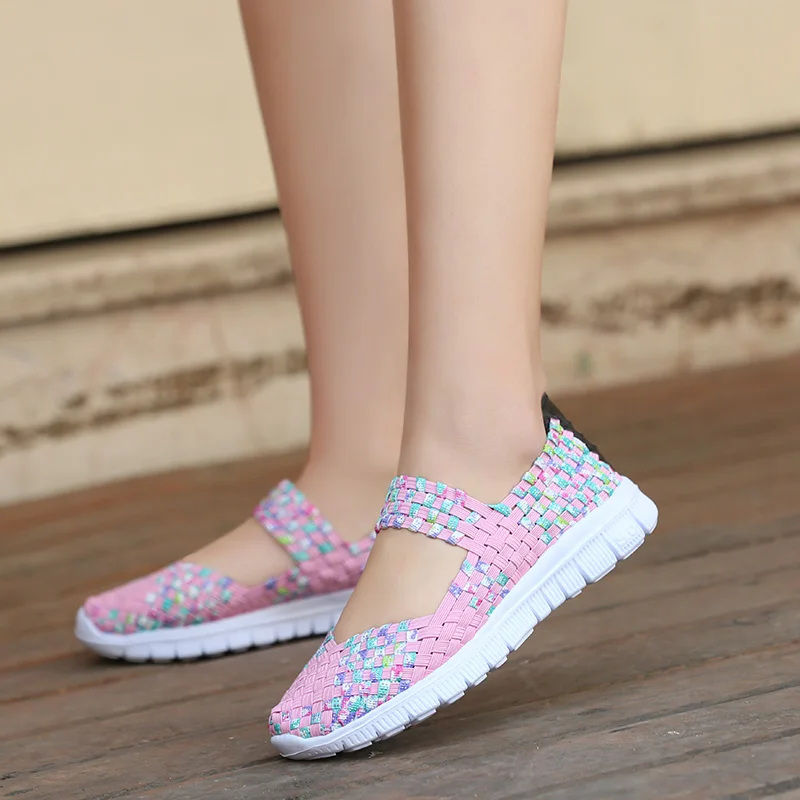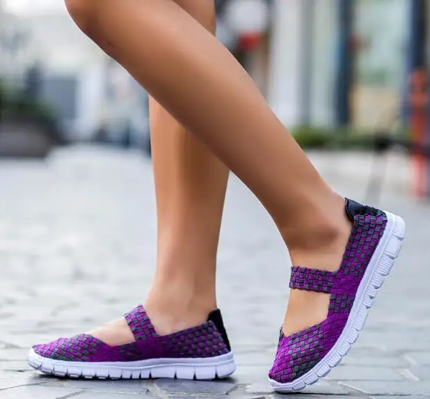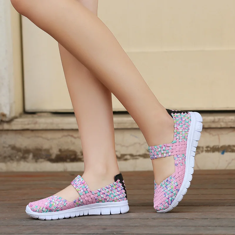 Туфли женские плетеные, дышащие удобные сандалии ручной работы, плоская подошва, повседневная обувь, большие размеры 35-42, лето 2019