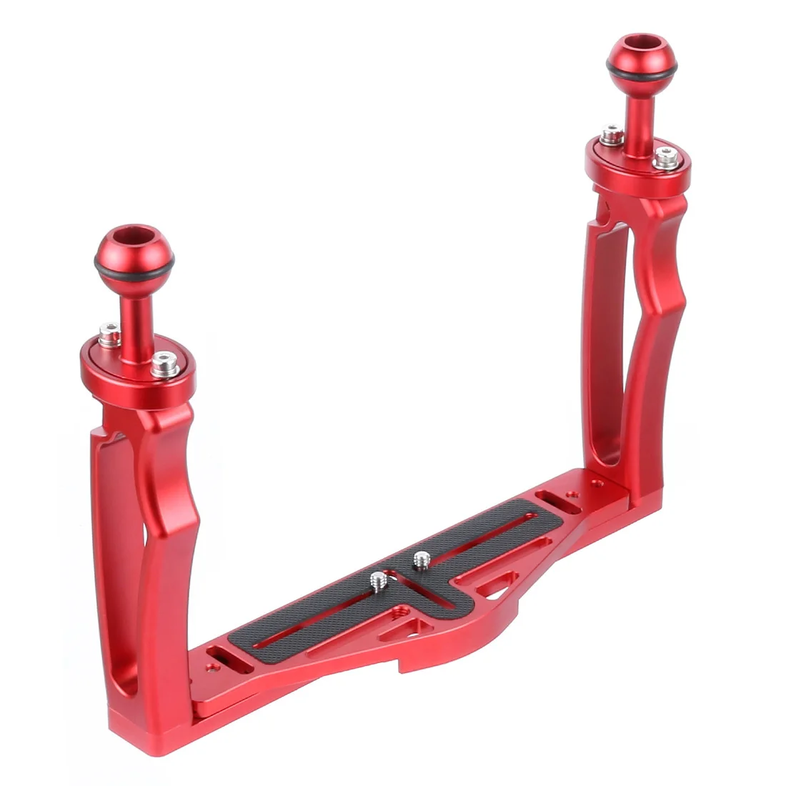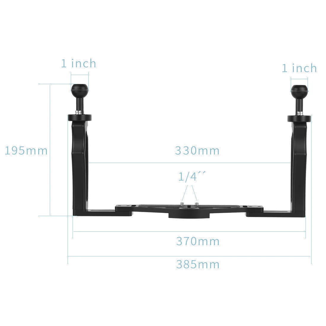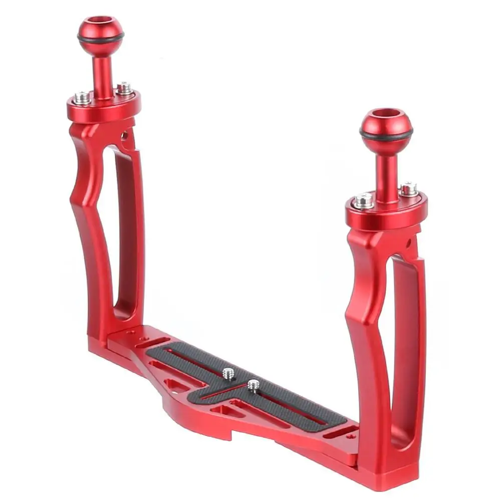 Вес брутто 655 г, нетто. W 590g Размер упаковки: 280*66*66 мм Материал: алюминиевый сплав + нержавеющая сталь + силикон Цвет: черный и красный Размер двойной портативной монтажной платы: 220*55 мм; Разработан с вертикальным и горизонтальным монтажным слотом для закрепления водонепроницаемого чехла или камеры; Размер водонепроницаемого чехла может быть установлен: Максимальное расстояние между двумя отверстиями для крепежных винтов составляет 166 мм в ширину, поэтому отверстие для крепежного винта водонепроницаемого чехла должно быть меньше 166 мм. Также можно установить одно отверстие для винта. Этот двойной портативный оптимизирован на основе продуктов предыдущего поколения, изменил недостатки предыдущих продуктов, а затем оставил профессиональным энтузиастам отзывы, И дополнительные модификации аксессуаров для фотосъемки дайвинга с двумя ручками.