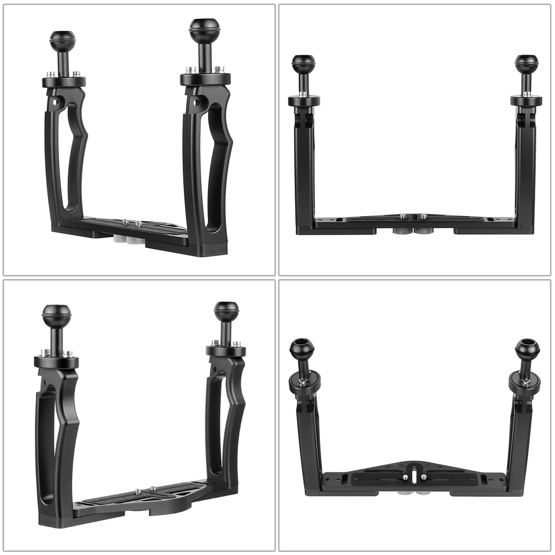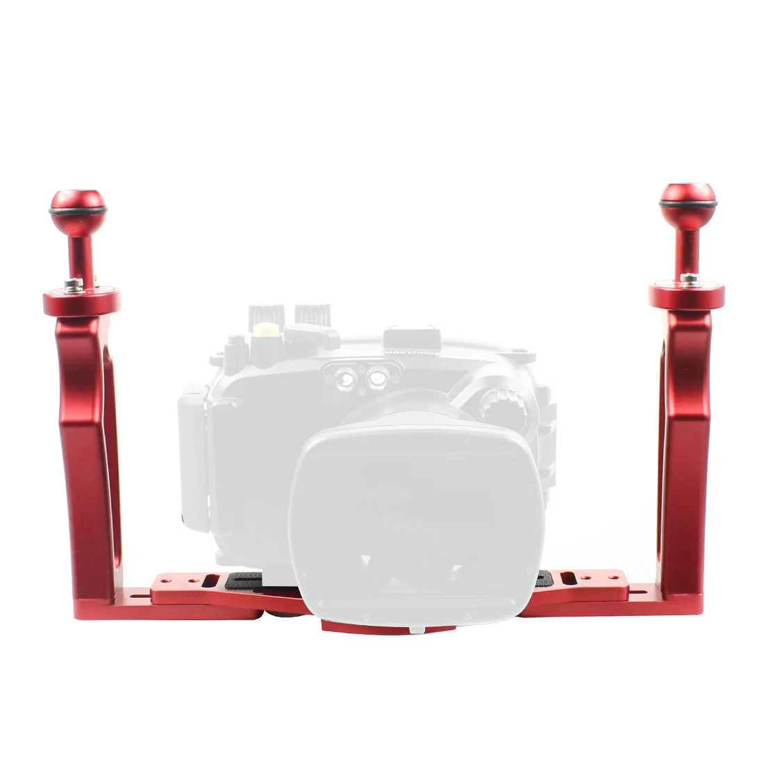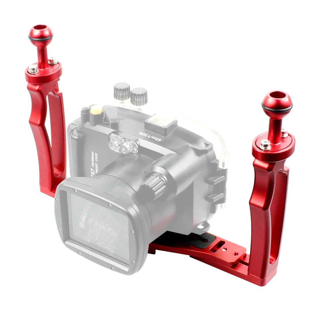 Вес брутто 655 г, нетто. W 590g Размер упаковки: 280*66*66 мм Материал: алюминиевый сплав + нержавеющая сталь + силикон Цвет: черный и красный Размер двойной портативной монтажной платы: 220*55 мм; Разработан с вертикальным и горизонтальным монтажным слотом для закрепления водонепроницаемого чехла или камеры; Размер водонепроницаемого чехла может быть установлен: Максимальное расстояние между двумя отверстиями для крепежных винтов составляет 166 мм в ширину, поэтому отверстие для крепежного винта водонепроницаемого чехла должно быть меньше 166 мм. Также можно установить одно отверстие для винта. Этот двойной портативный оптимизирован на основе продуктов предыдущего поколения, изменил недостатки предыдущих продуктов, а затем оставил профессиональным энтузиастам отзывы, И дополнительные модификации аксессуаров для фотосъемки дайвинга с двумя ручками.