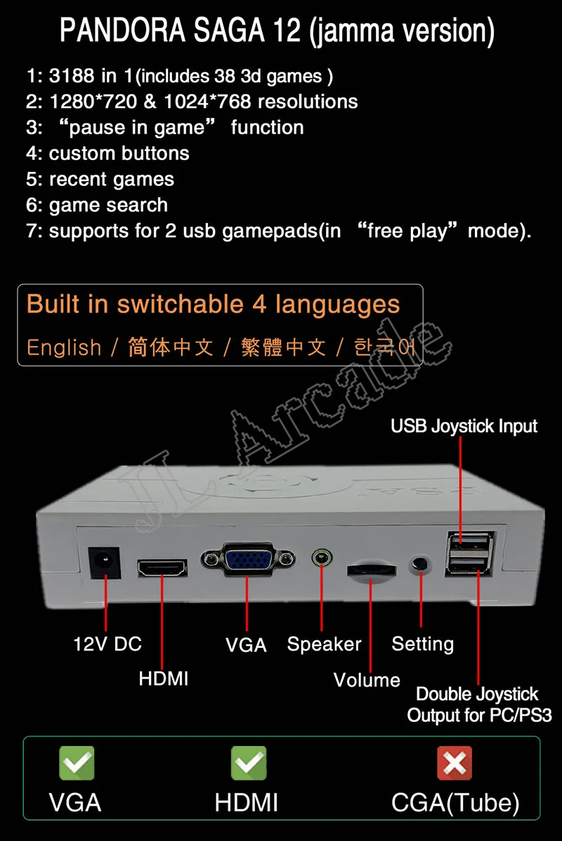 3188 в 1 Pandora Сага 12 аркадная версия Jamma доска аркадный шкаф джойстик машина монетное управление HD видео 3D игры HDMI VGA