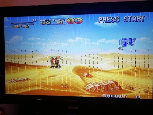 Вертикальные линии на sprites, несколько часов работы, и я обнаружил, что сломанные следы зафиксировали его, и получил его работу. Продавец говорит, что был протестирован, но имейте в виду, что возможно, он не был протестирован должным образом и может включать в себя навыки пайки. И, конечно, грязные/батареи мертвы.