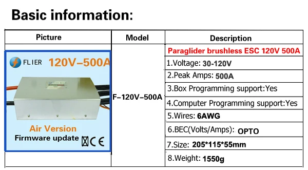 Высокомощный бесщеточный контроллер 22S-120V 500A HV ESC + программная коробка для радиоуправляемых параметров воздухаБПЛА и т. д.