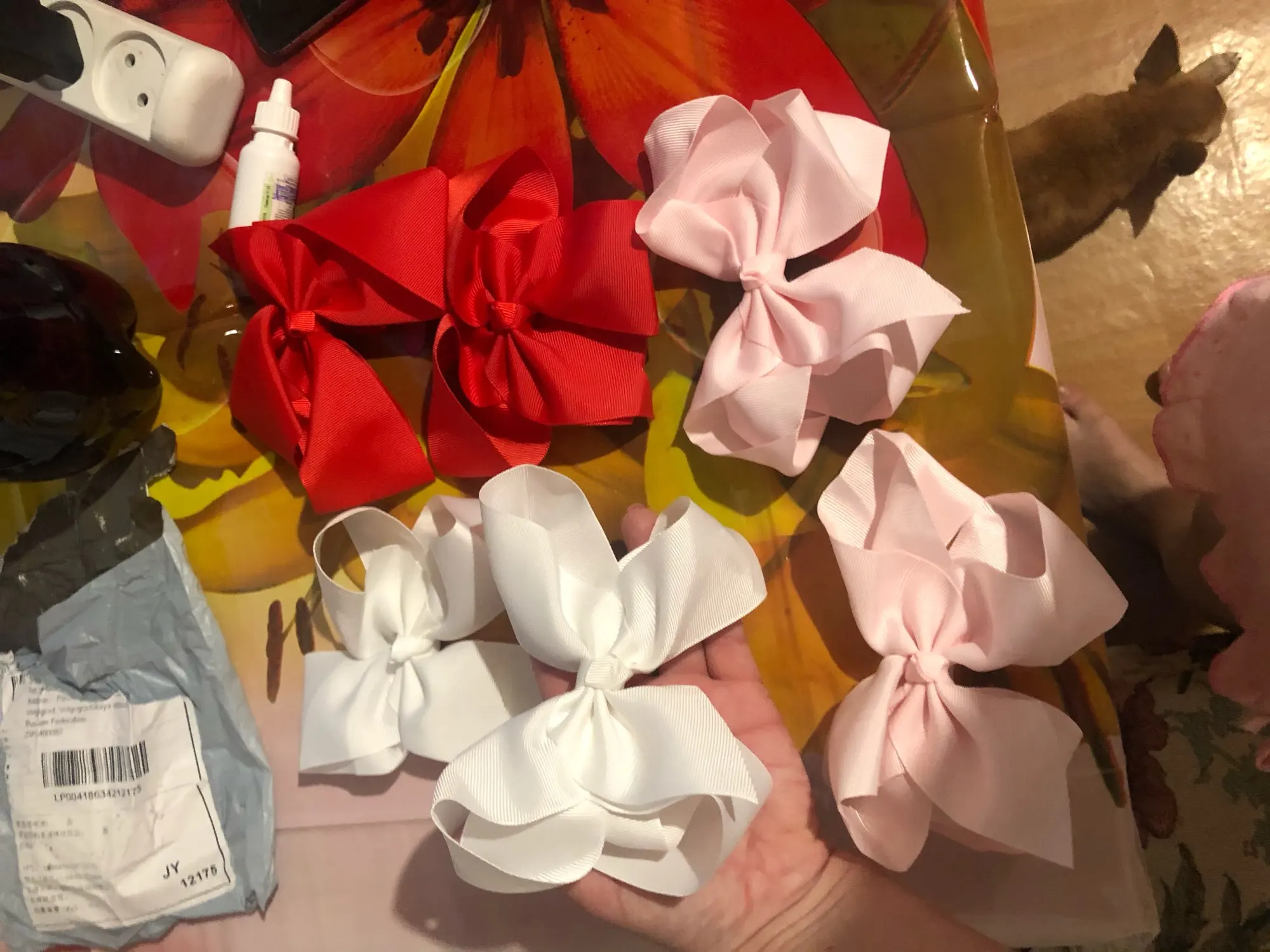 пришли бантики в пакете, качество хорошее, выглядит все как на картинке, но я думала они меньше раза в два. если ищите большие бантики смело заказывайте
