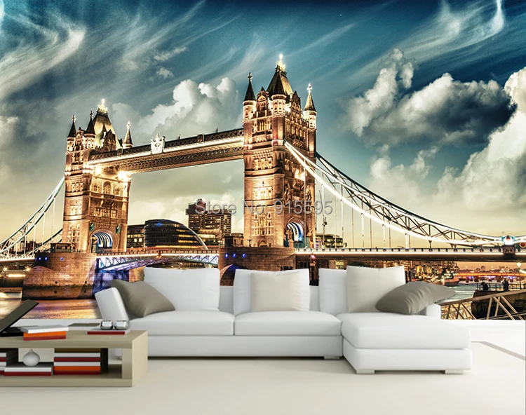 Настенные фрески на заказ любого размера для офиса, гостиной, гостиной, европейская художественная роспись, 3D стерео нетканые обои с лондонским мостом