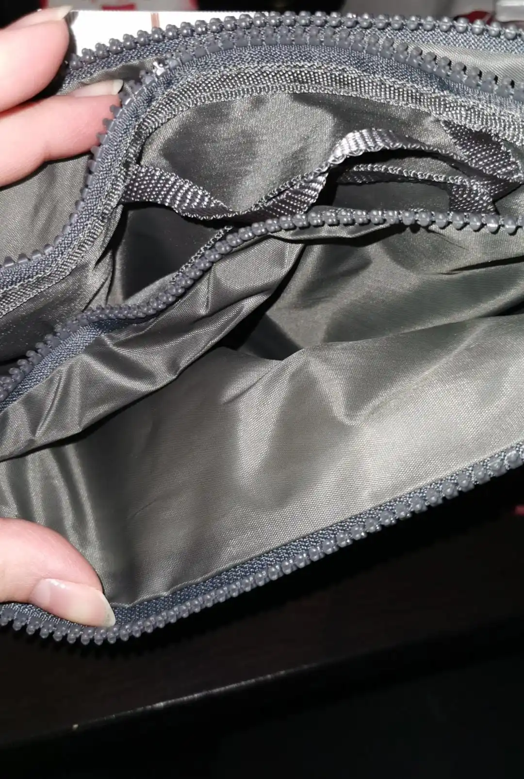 Хороший продукт. Компактный, с множеством карманов, паковина, замки работают без проблем, также зажимов сбоку. Этот косметический пакет с 2 другими-очень подходит для различных сумок. Все размеры соответствуют. Все в порядке-настоятельно рекомендую.