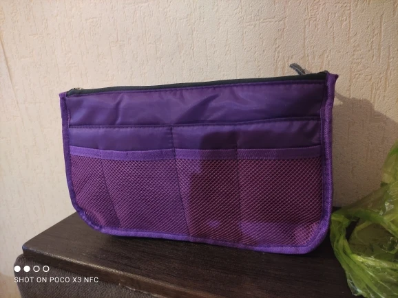 Пришел быстро, качество нормальное. Я думала внутри будет больше отделений, а там одно большое, но все равно, органайзер достаточно удобный.