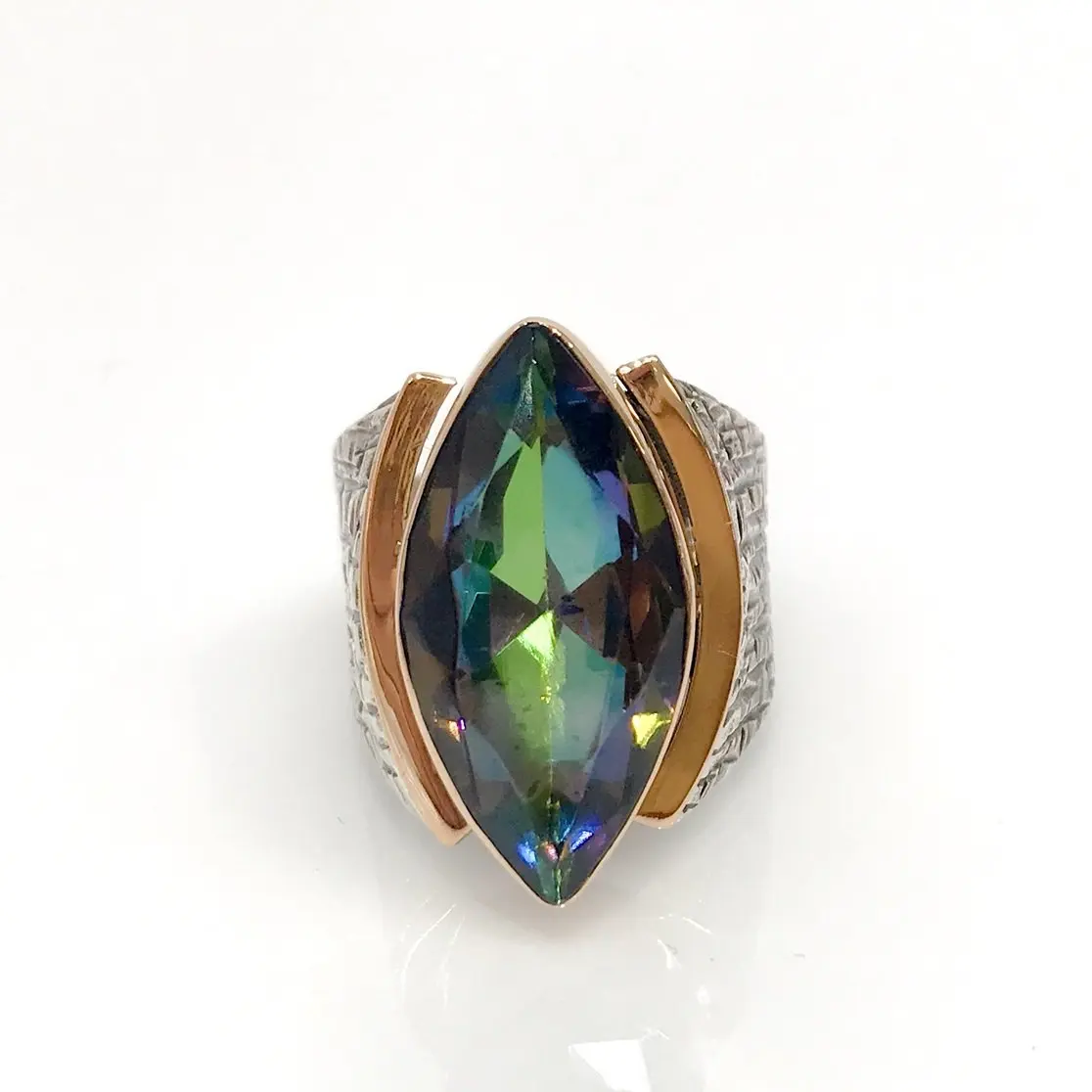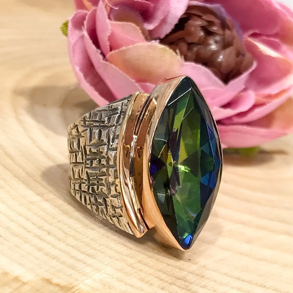 Женское кольцо с натуральным радужным топазом, серебряное кольцо ручной работы